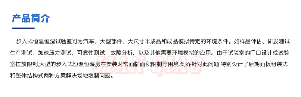產(chǎn)品型號:JQWI-12(非標定制款) 品牌:劍 喬 用途:步入式恒溫恒濕試驗室可為汽車、大型部件、大尺寸半成品和成品模擬特定的環(huán)境條件。如樣品評估、研發(fā)測試生產(chǎn)測試,加速壓力測試,可靠性測試,故障分析,以及其他需要環(huán)境模咨詢熱線:13829135130