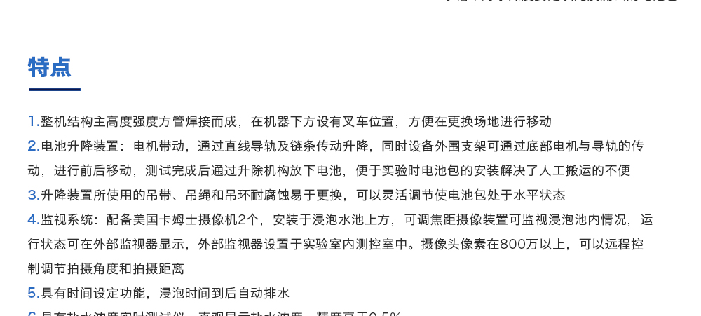 產品型號:JQ-6018 品牌:劍 喬 用途:海水浸泡試驗裝置主要用于電池以實車裝配狀態與整車線束相連然后以實車裝配方向在常溫下的海水成分中浸泡2h(海水為模擬海水成分,濃度為3.5%NaCl溶液)水槽中海水深度要足以淹咨詢熱線:13829135130