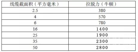 2.1.1 端子至線纜的拔出力:該測試是為了確保線束在車輛裝配過程及后續(xù)使用產(chǎn)生的作用力不會使線纜脫出端子,從而造成產(chǎn)品失效。該測試與供應(yīng)商的壓接參數(shù)和線纜接插件匹配度有高度相關(guān)性。具體力學(xué)性能要求見表1。