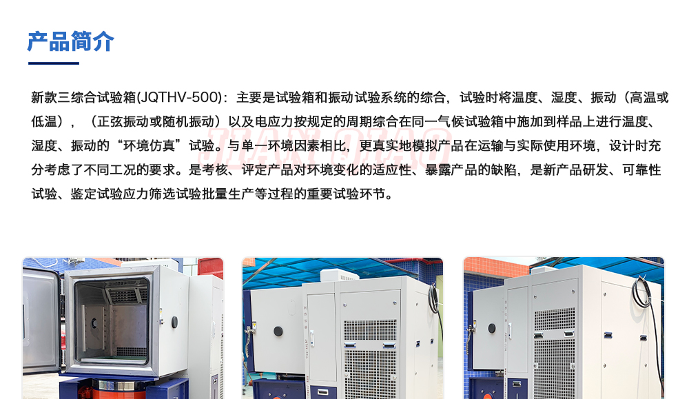 產(chǎn)品型號:JQTHV-500 品牌:劍 喬 用途:新款三綜合試驗箱(JQTHV-500):主要是試驗箱和振動試驗系統(tǒng)的綜合,試驗時將溫度、濕度、振動(高溫或低溫),(正弦振動或隨機振動)以及電應力按規(guī)定的周期綜合在同一氣候試驗箱中。咨詢熱線:13829135130