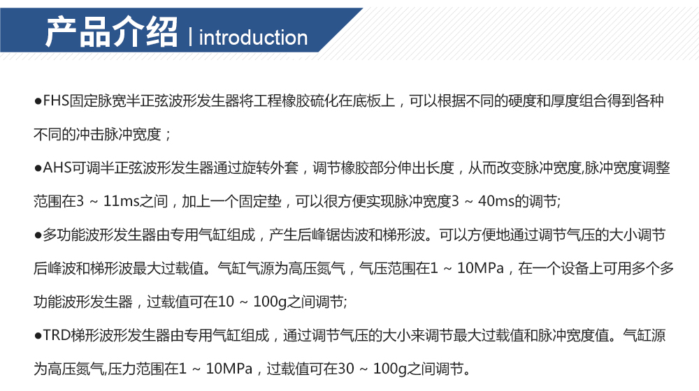 產品型號: 品牌:劍 喬 用途:FHS固定脈寬半正弦波形發(fā)生器將工程橡膠硫化在底板上,可以根據(jù)不同的硬度和厚度組合得到各種不同的沖擊脈沖寬度。咨詢熱線:13829135130